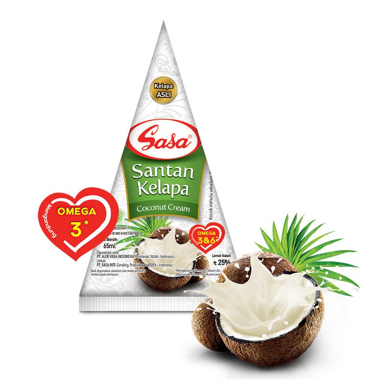 Sasa Santan cair adalah santan perasan pertama yang terbuat dari daging buah kelapa tua segar pilihan. Diproses secara higienis dengan teknologi modern. Rasa dan aroma santan asli.