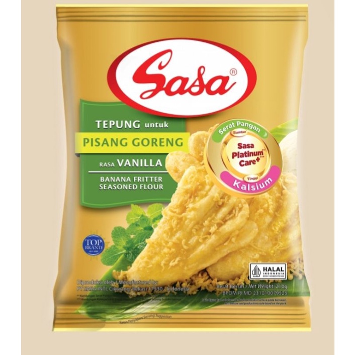 Sasa tepung pisang goreng rasa vanilla kini hadir dengan dilengkapi Sasa Platinum Care+ yang mengandung serat pangan dan kalsium. Sasa Tepung untuk Pisang Goreng rasa Vanilla diracik menggunakan bahan-bahan pilihan yang berkualitas dengan dilengkapi telur, penggunaan tepung pisang goreng ini juga sangat mudah dan praktis dan tidak perlu menggunakan bumbu tambahan lainnya. Dengan rasa dan aroma vanilla yang khas membuat pisang goreng Anda akan lebih disukai dan dinikmati.