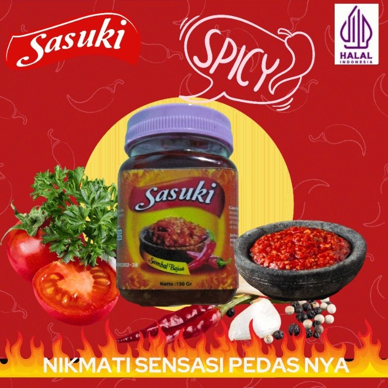 Sasuki sambal Bajak varian ori, teri, pedo dari cabai pilihan dan bahan2pilihan. pedas nya pas d lidah. bisa tahan 3 bulan dan bisa d simpan d kulkas setelah di buka.