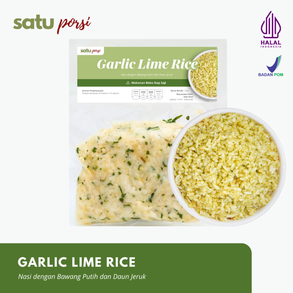 Nasi dengan bawang putih dan daun limau ini bisa menjadi pelengkap makan Satu Porsi-mu! Wangi daun limau nya menggugah selera. Tanpa pengawet & MSG. Terbuat dari bahan-bahan premium.