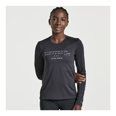 Saucony Женское Секундомер Графический Длинный Рукав Черный Графический Одежда, Black graphic