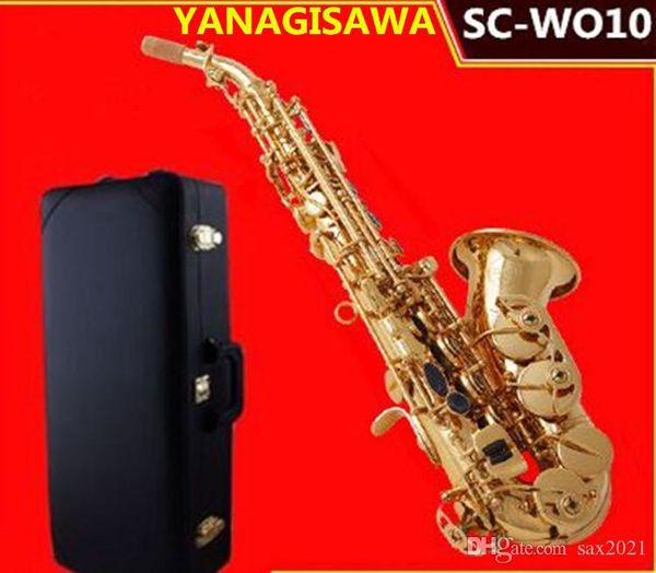 высокое качество Янагисава SC-W010 Малый Изогнутые Сопрано саксофон Электрофорез Золотой саксофон B Flat инструменты, включая аксессуары Case Free Ship