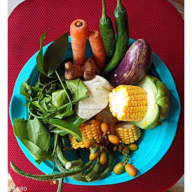 sayur lodeh bahan segar komplit sdh ada bumbunya daun salam,cabe hijau besar dan lengkuas Laos,tidak perlu repot-repot lg ke pasar panas2an ya mom,isinya terdiri dari wortel,terong,labu Siam,kacang panjang,daun melinjo,buah melinjo,kol,jagung manis,
