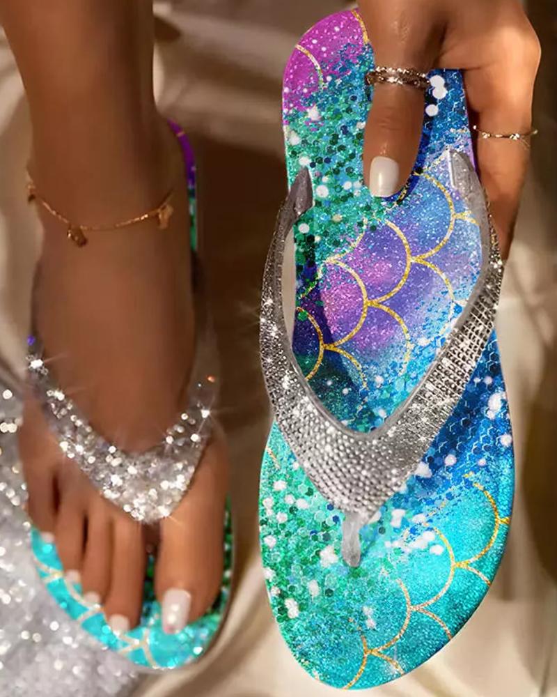 Scale Print Beach Flip Flops, Multicolor