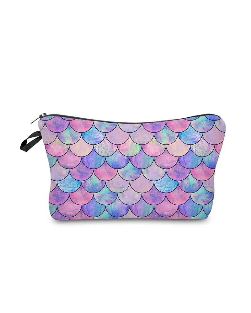 Scale Print Colorblock Makeup Bag, Style1