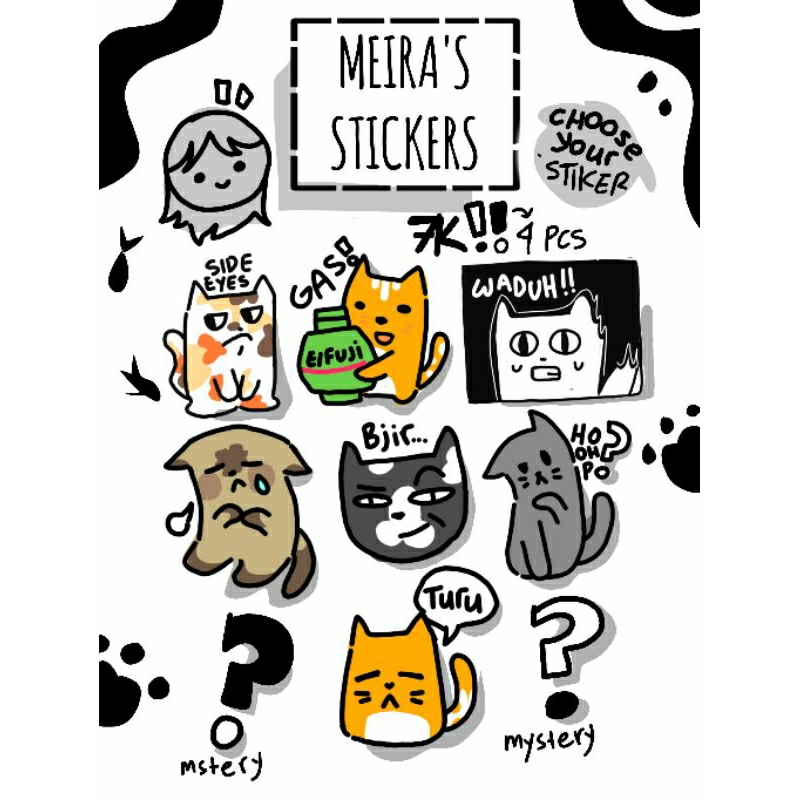 stiker aroma dengan 7 bentuk kucing berbeda.