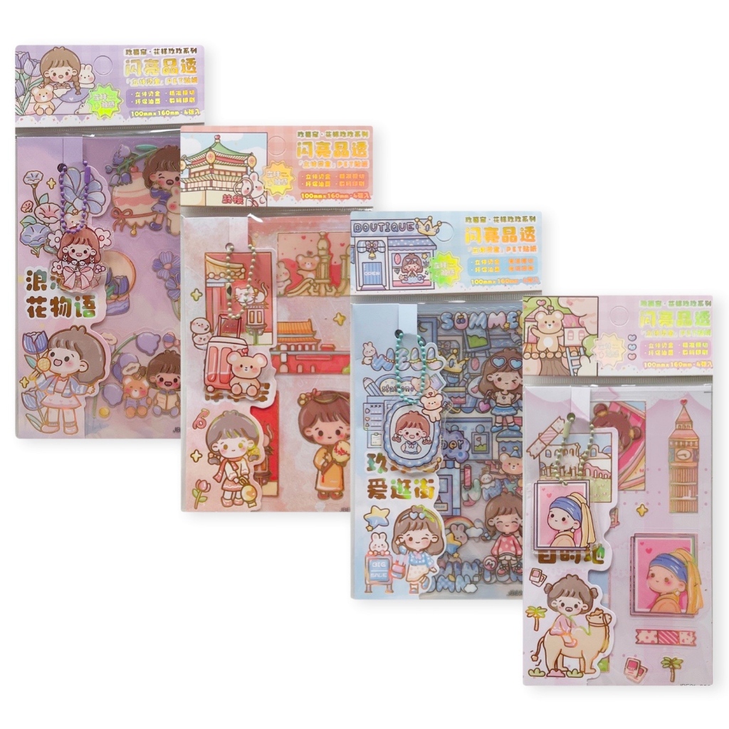Isi : 3 pcs stiker (10x16cm) , 1 set gantungan kunci