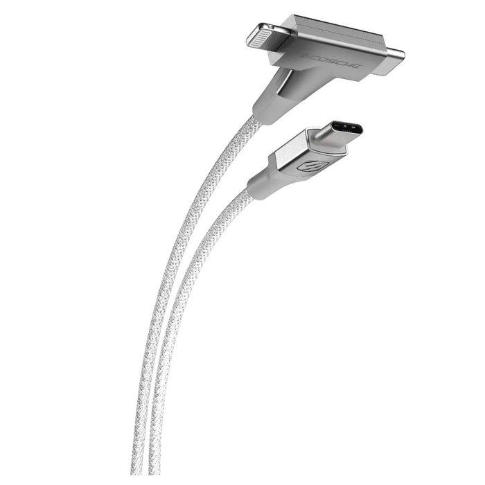Scosche strikeline 2-in-1 usb-c to c/lightning cable - white