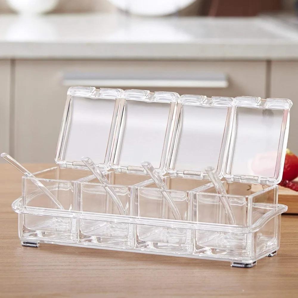 Seasoning Box 1 Set Seasoning Bottle with Lid and Spoon Transparent Crystal Seasoning Storage Container Kitchen Seasoning Tool