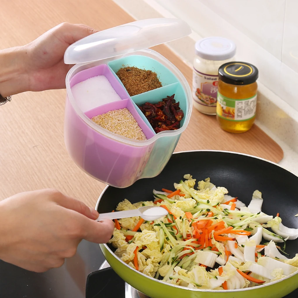 Seasoning Rack Spice Pots Plastic Seasoning Storage Box Container Condiment Jars Cover Spoon Cruet