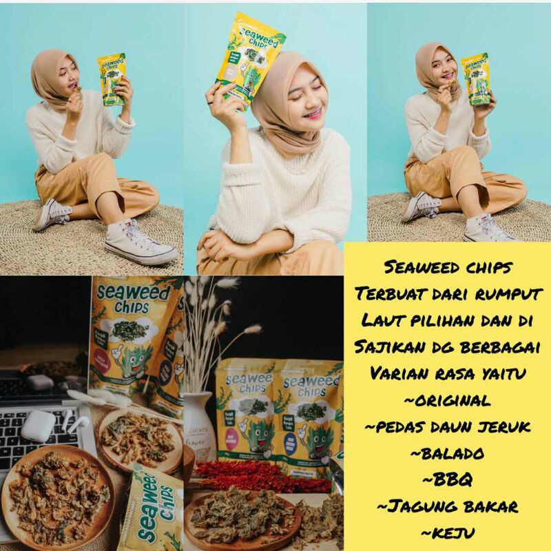 Seaweed Chips adalah keripik yang terbuat dari Rumput Laut Pilihan. Kandungan Nutrisi yang ada dalam Rumput Laut yaitu: Serat yang tinggi, Asam lemak omega-3, dan Polifenol.