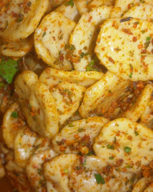 Kerupuk yg di goreng bantet tapi tetap renyah di tambahkan dg bumbu basreng yang pedas dan gurih.