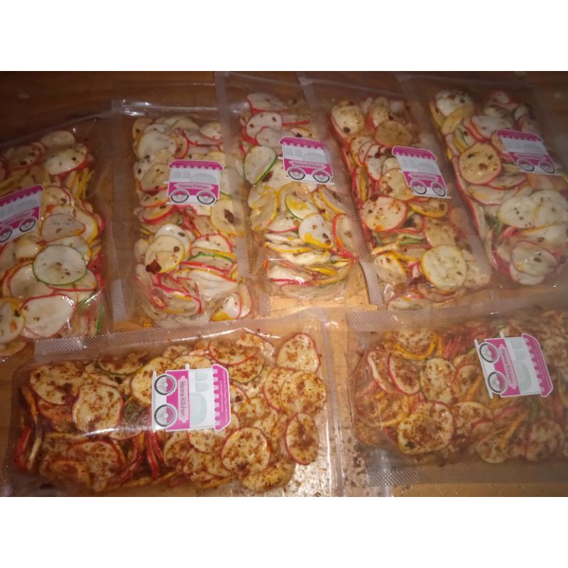 Ingredients: kerupuk, cabai, cabai bubuk, penyedap rasa, bumbu spesial, daun jeruk.