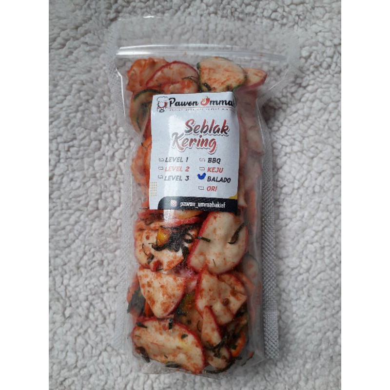 Kerupuk seblak kering dengan rasa balado yang mantap. ada yg pedas level 1 2 dan 3, ada yang tidak pedas...