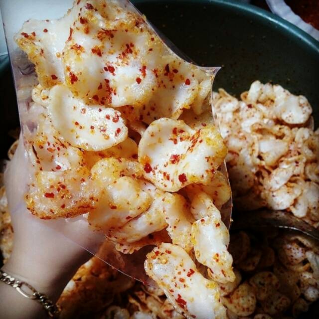 .Seblak ham . terbuat dari krupuk bulat putih Lezat dan enak, sekali coba pasti ketagihan mantap . 1 bungkus beratnya 80gram