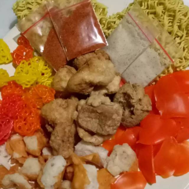 Seblak instan dan halal. Pedas bisa di buat dengan selera anda . Isi nya siomay ,kerupuk,mie dll