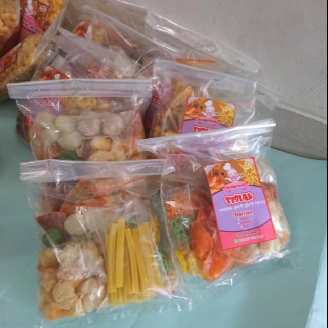 Seblak komplit.. Ada kerupuk, makroni, siomay kering, mie telor, baso, cilok dan pastinya idah ada bumbunya tinggal di pasak aj praktis tanpa bahan pengawet.. Catatan:setiap pembelian 2 pcs seblak gratis 1 mie instan kuah/mie goreng trgantung stok yg tersedia