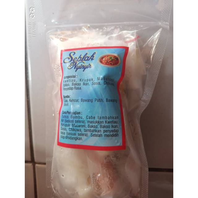 Seblak nyinyir isi kwetiaw, krupuk, baso sapi, baso ikan, macaroni, chikuwa