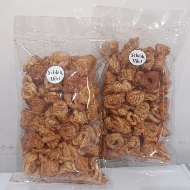 kerupuk seblak udel/kuping dengan rasa pedas daun jeruk, berat 100 gram