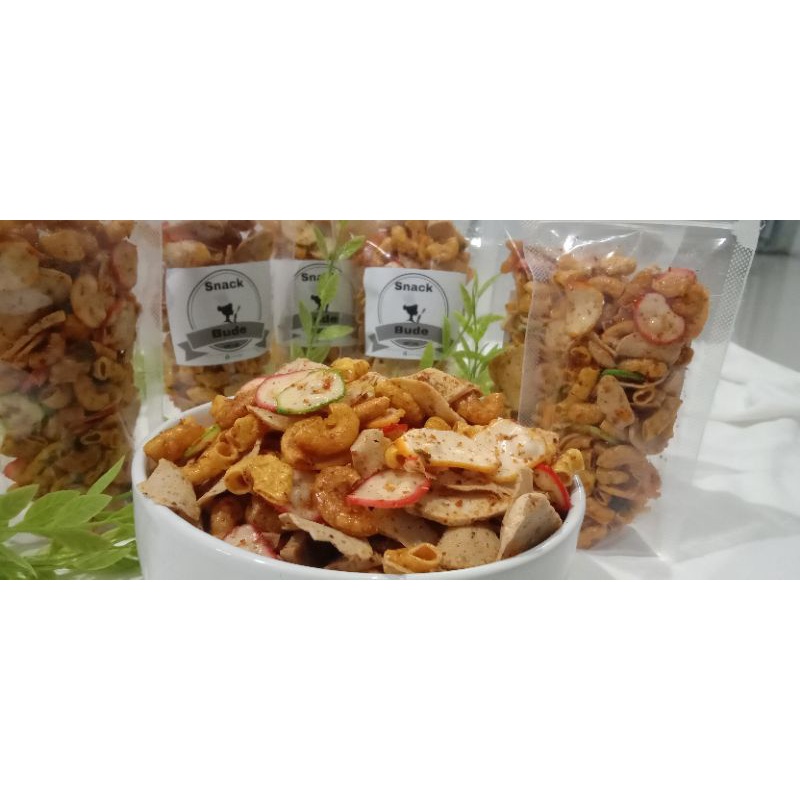 seblak kering pedas mix makaroni krupuk dan basreng