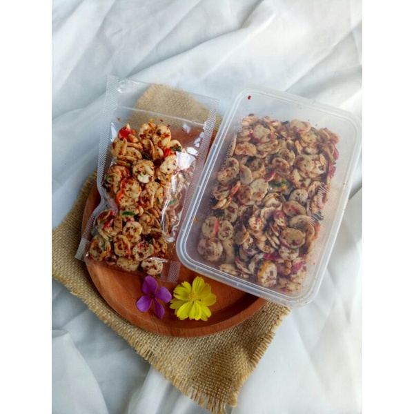 Rasa pedas daun jeruk, gurih, renyah cocok untuk teman cemilan
