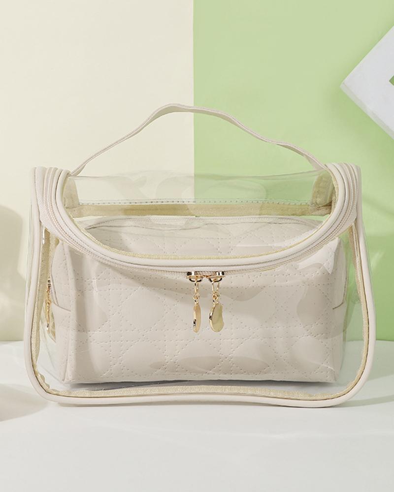 See Through Clear Large Capacity Cosmetic Case Organizer Top Handle Makeup Toiletry Bag With Inner Pouch, White