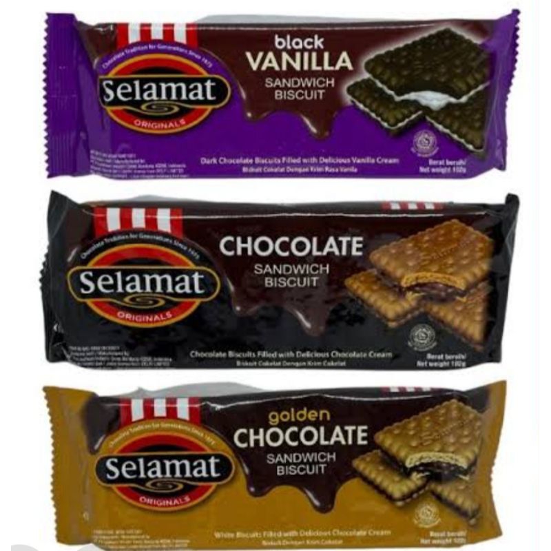 Selamat Biskuit tersedia 3 pilihan rasa... cokelat, Golden coklat dan Black Vanila... di jual per 1 bungkus isi 102 g... yuk di order