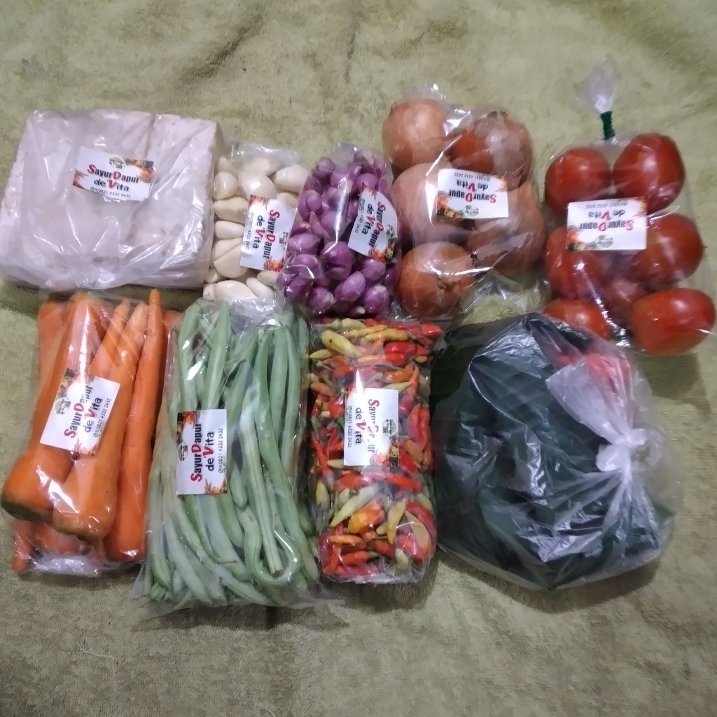 berbagai macam sayur dijual per pack dengan berat sekitar 50, 100 gram, atau perikat.