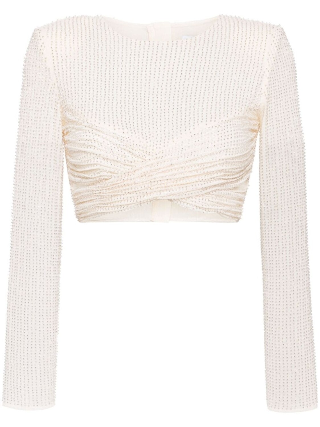 Self-Portrait укороченный сетчатый топ с бисером, нейтральный цвет
