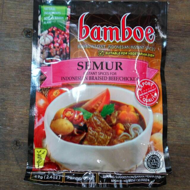 Semur Bamboe, berat bersih 69gr, cara masak ada di kemasan