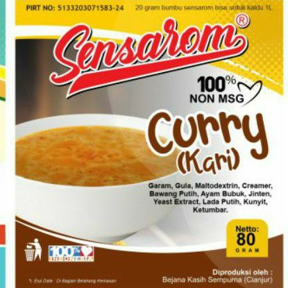 Sensarom bumbu kari ini ukuran 80 gram ya. Takaran utk masak 20 gram sensarom kari utk 1 liter air.
