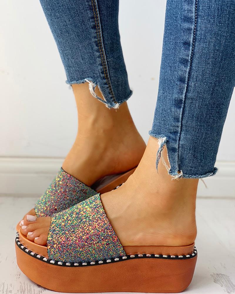 Sequins Pattern Platform Muffin Sandals