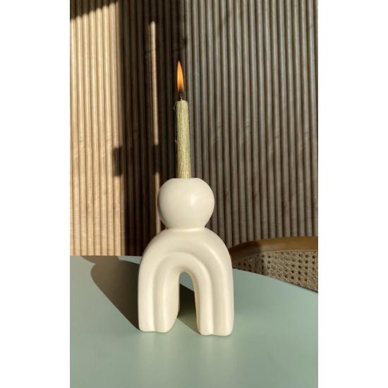 Seramik El Yapımı Mumluk | Tasarım | Bej Renk | Boy:16cm En:10cm