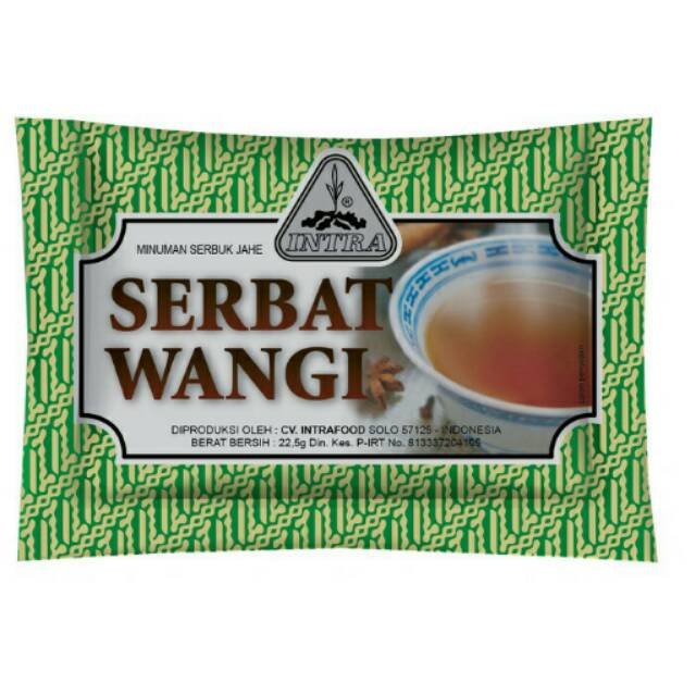 Intra Serbat Wangi dibuat dari ramuan rempah-rempah Indonesia, seperti Jahe, Cabe Jawa (Cabe Puyang), Cengkeh, dan Gula Kelapa. Citarasanya manis, pedas khas rempah, gurih dan tentunya menghangatkan.