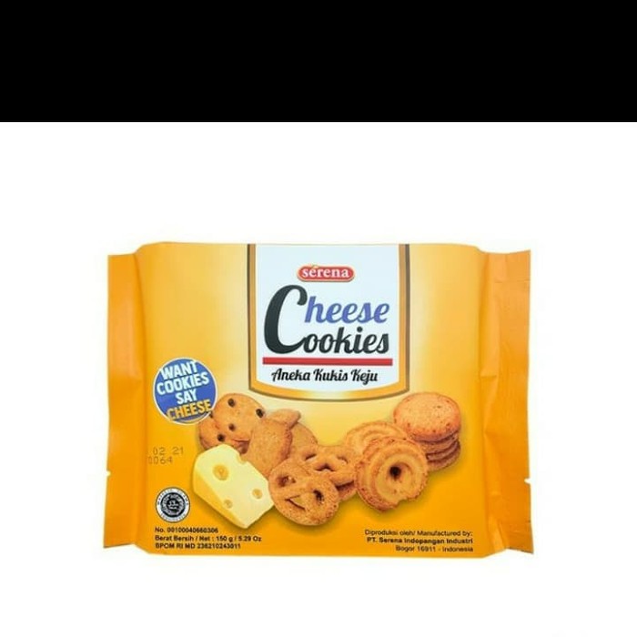 Serena Cheese Cookies, Cookies yang terbuat dari keju asli, dengan bahan berkualitas premium, dapat segera dinikmati di segala suasana santai dan segala aktivitas sehari-hari.