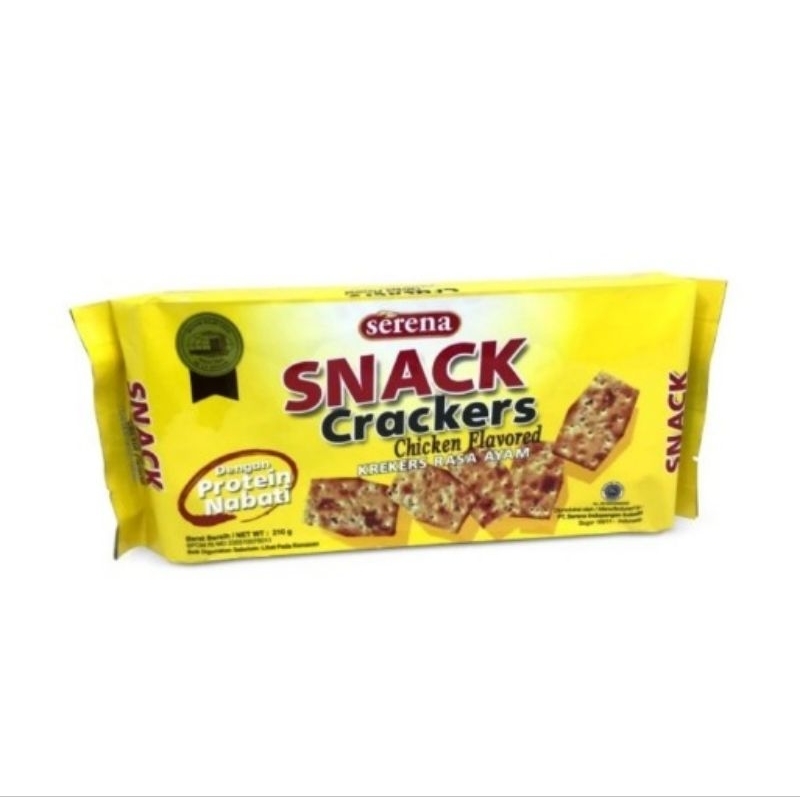 Serena Snack Crackers Rasa Ayam Biscuit [210 g] merupakan Snack biscuit yang sangat renyah, manis, dan sangat gurih dengan rasa ayam. Cocok untuk dijadikan cemilan Anda dan keluarga.