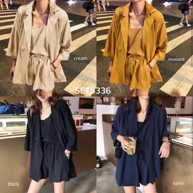 Detail : Set 3pc dapat blazer + tanktop + celana pendek