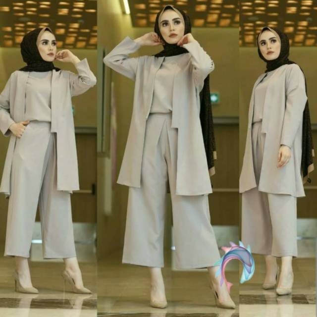 Matt moscrepe iner LD 102 PJ 62 cardi outer LD 104 PJ 93 celana kulot pinggang karet PJ 90
