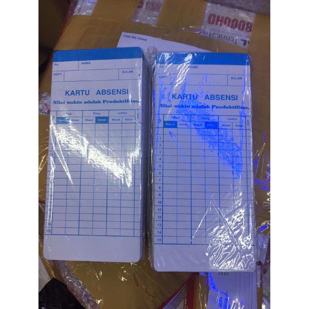 Set kartu absensi untuk mesin absensi manual atau ceklok. Set ini terdiri dari 100 pcs kartu absen. Cara penggunaannya adalah dengan memasukkan kartu pada slot atau lubang pada mesin. Mesin akan lansung mencetak waktu absen dan kartu absen akan otomatis keluar dari mesin