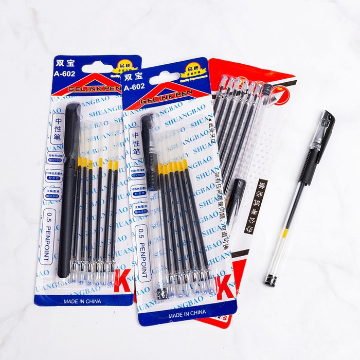 Set Pulpen Gel Hitam + 6 Tinta Isi Ulang