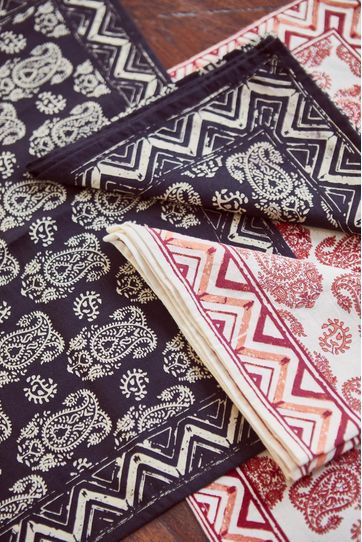 Set de dos servilletas de 45X45cm y dos individuales de 35X45cm en algodón estampados.