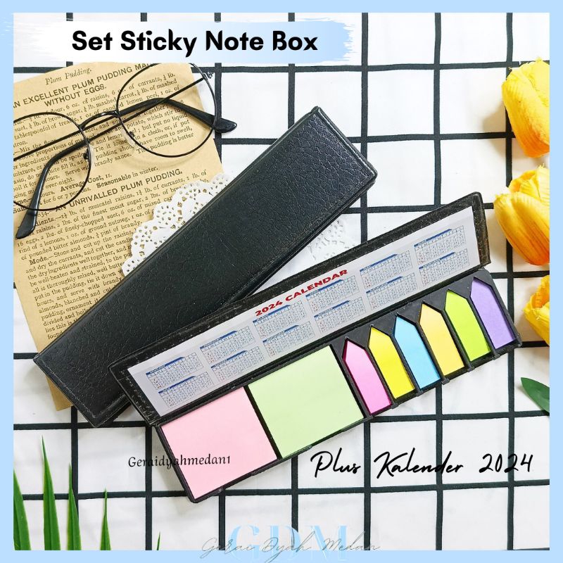 Set Sticky Note Box Hitam Plus Kalender 2024