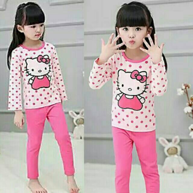 #LC Set cute kitty Setelan bahan spandek uk 3 sd 6 tahun
