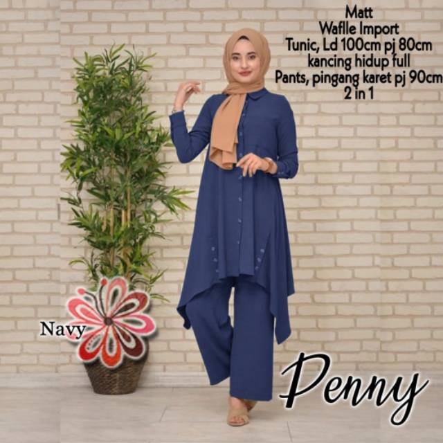 Bahan wafel tunik LD100cm Pjg80cm kancing full + Pant Pinggang Karet Pjg90cm