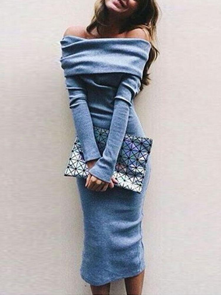 Sexy Off Shoulder Bodycon Midi Dress, Blue