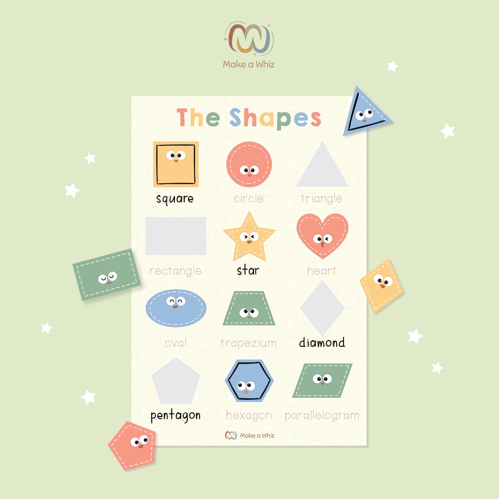 Activity Poster yang diperuntukkan untuk anak usia 2 tahun ke atas. Didesain khusus untuk tahapan pembelajaran awal atau tahap usia pra sekolah untuk mengajarkan anak tentang bentuk dengan cara yang menyenangkan yaitu dengan menggunakan sticker menarik bagi anak.