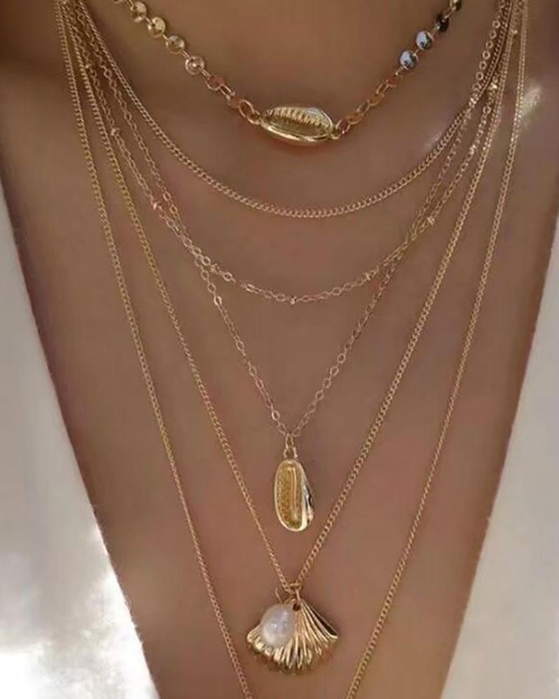 Shell Beaded Pendant Layered Chain Necklace, Gold