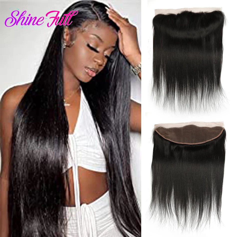 ShineFull Hair перуанские волосы, прямые ткани, 13x4 HD, фронтальные зажимы, только закрывают человеческие волосы 8-22 дюйма, черного цвета