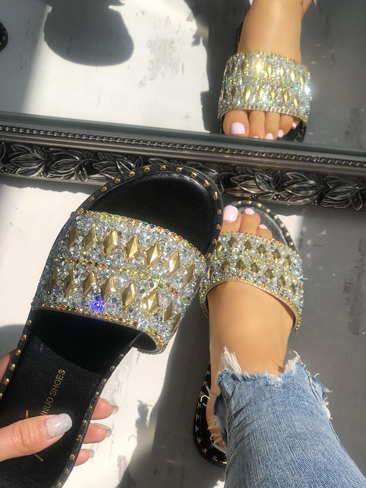 Shiny Sequins Rivets Embellished Sandals, Silver