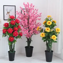 New Large-scale Lucky Peony Flower, Peach Blossom, and Anthurium Potted Planting Tree, Hotel Shopping Mall Office Decoration